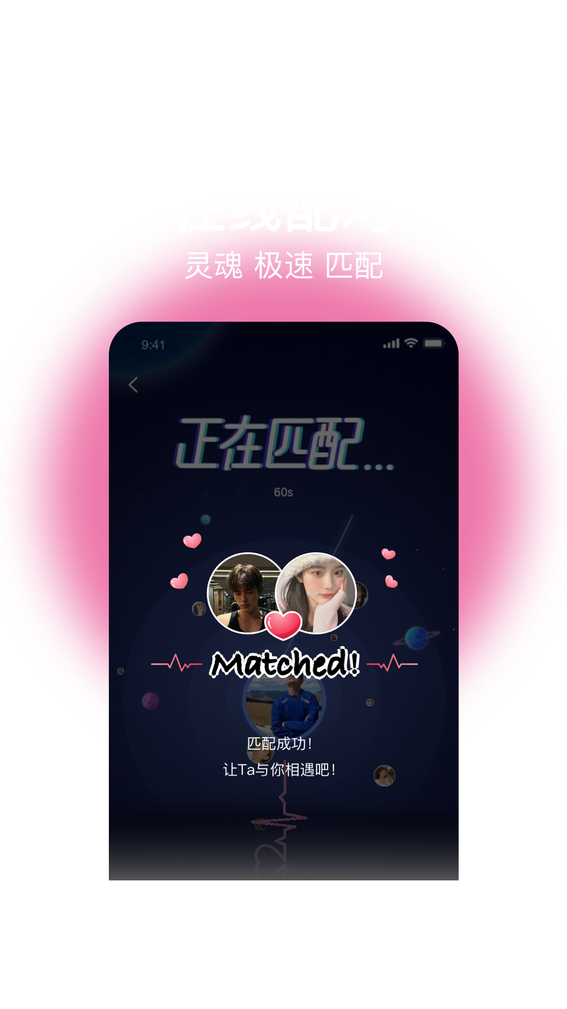 “在线配对”是一款随机匹配的交友 游戏,一键匹配,随意畅聊,用你 的有趣和可爱去吸引Ta,让交友变 得如此简单。