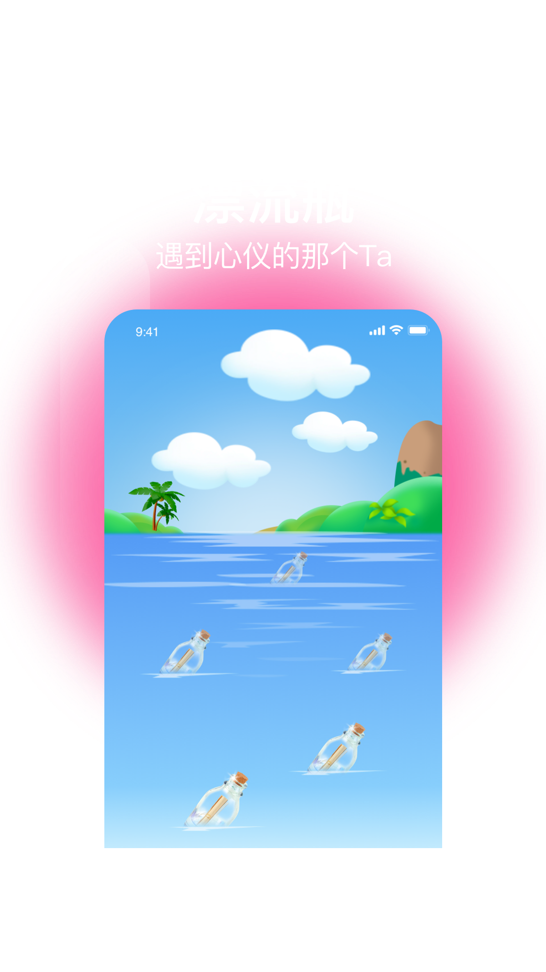 “漂流瓶”:是一款同城内随机匹配的交友游戏,你可以在浩瀚的银河大海中点击瓶子,可以看到不同人倾诉;遇到心仪的那个Ta;也可以扔瓶子,全力出击。总之万点繁星,甜蜜无穷。